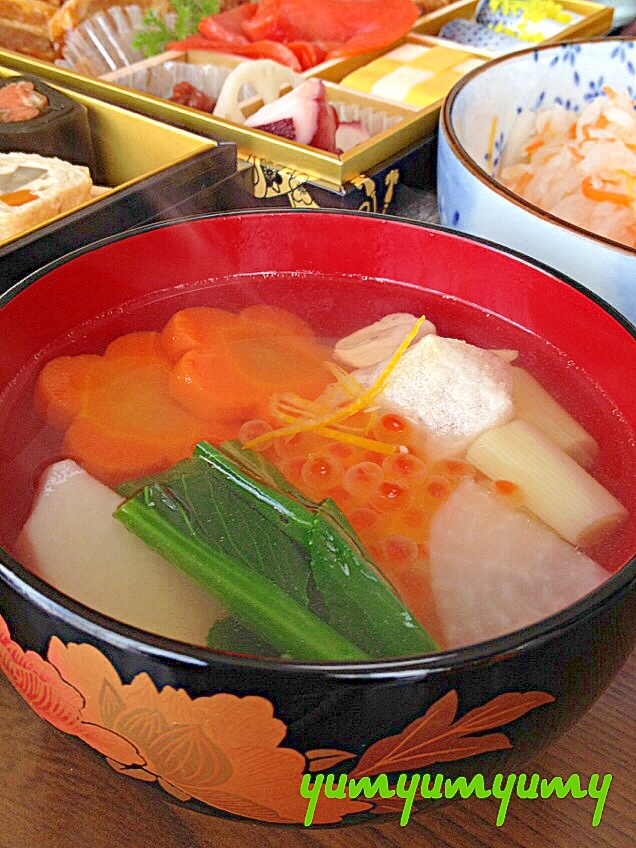 いくら入りの彩り雑煮のレシピ つくり方 キッコーマン ホームクッキング