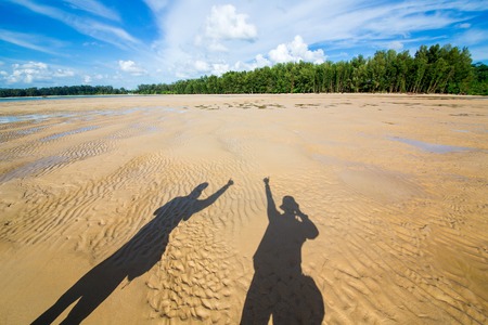 ビーチの夏の休日の概念上の影のカップル の写真素材 画像素材 Image